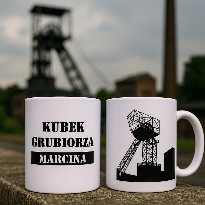 Produkt: kubek, kopalnia, szyb, górnik, z nadrukiem, z imieniem, kubek grubiorza
