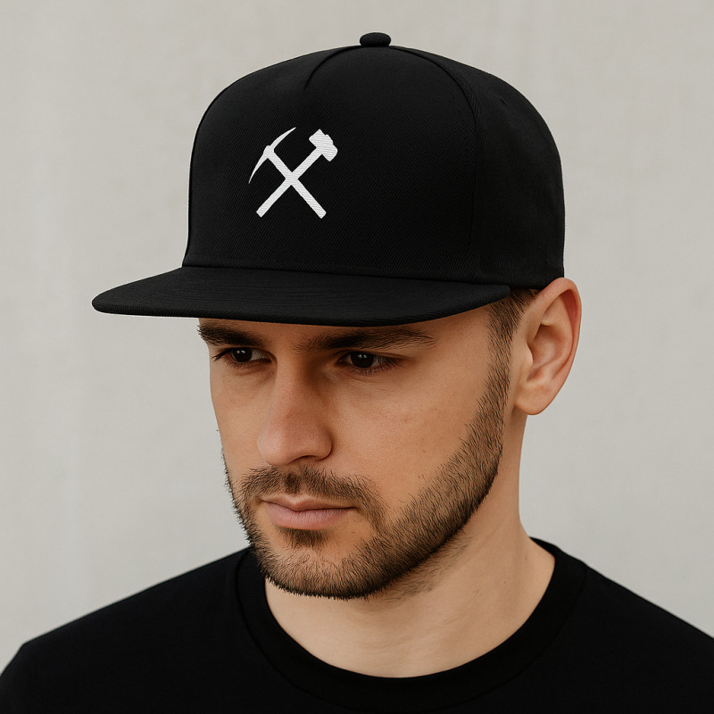 Nowoczesna czapka snapback z minimalistycznym górniczym logo to połączenie stylu, tradycji i dumy z pracy pod ziemią ⚒