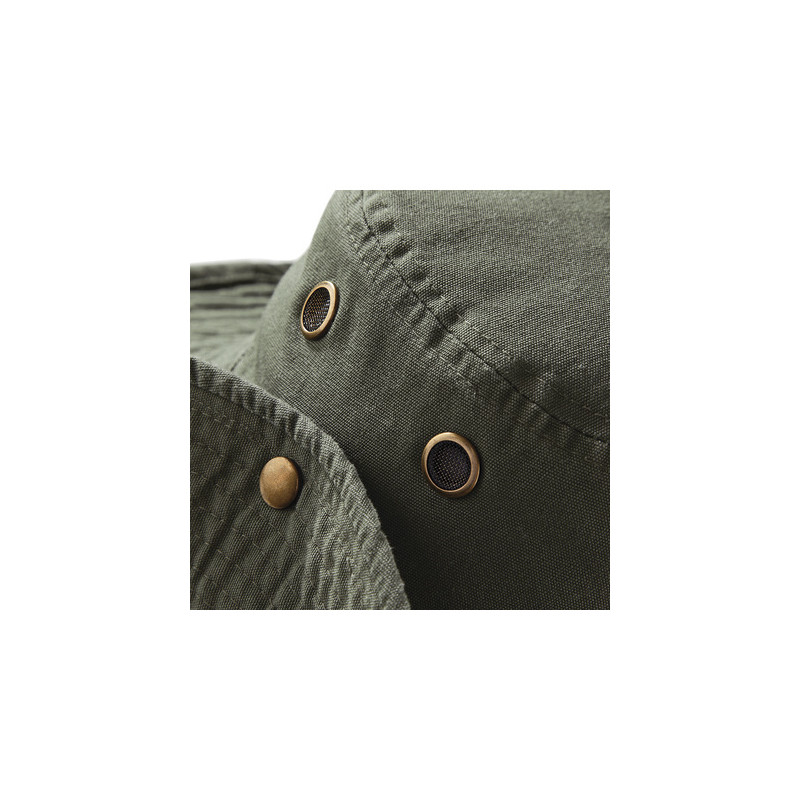 Kapelusz wykonany w 100% z bawełny, co zapewnia komfort noszenia nawet podczas upałów. Solidne przeszycia, wielokrotnie pikowane rondo oraz metalowe oczka wentylacyjne zwiększają trwałość i funkcjonalność modelu. Produkt spełnia normę BS 8466 dotyczącą ochrony przed promieniowaniem słonecznym.