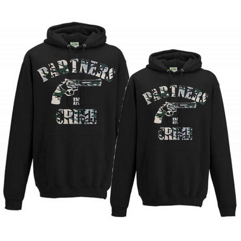 2x BLUZY Z KAPTUREM Z NADRUKIEM MORO NADRUK IMION GRATIS PARTNERS IN CRIME BROŃ PREZENT NA WALENTYNKI