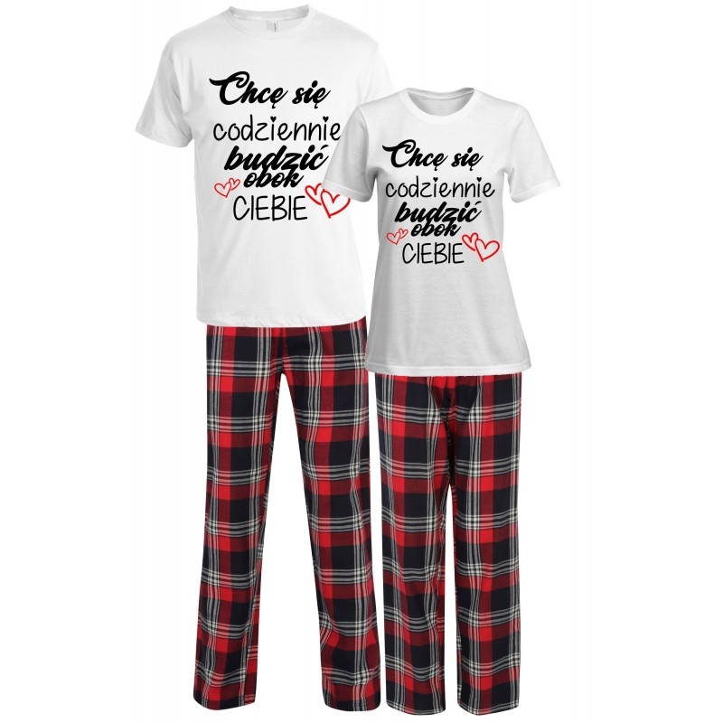 CHCĘ SIĘ CODZIENNIE BUDZIĆ PRZY TOBIE - ZESTAW PIŻAMY DLA PARY PREZENT NA WALENTYNKI