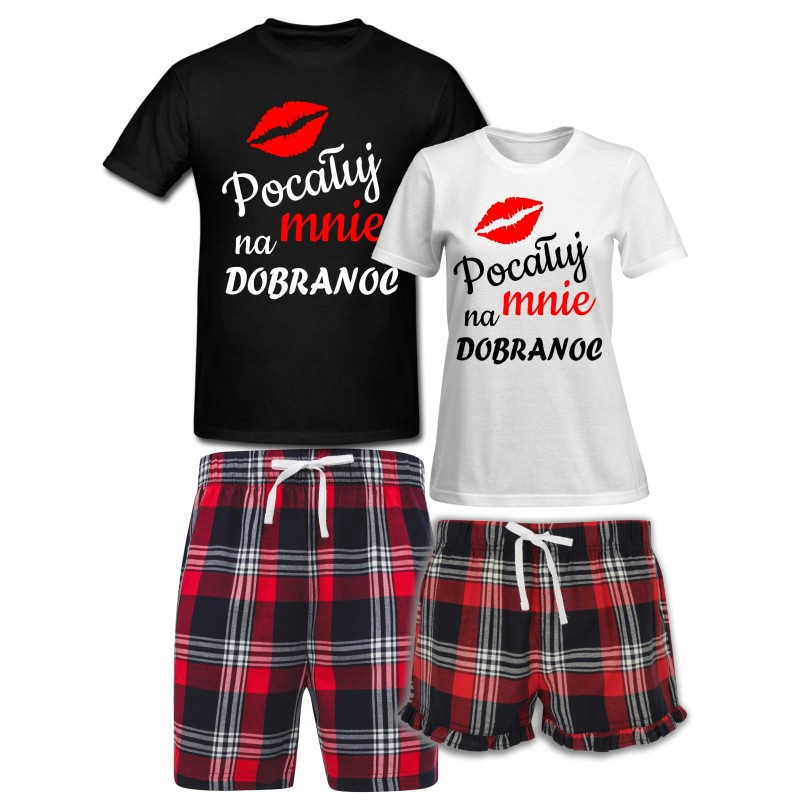 POCAŁUJ MNIE NA DOBRANOC - ZESTAW KRÓTKICH PIŻAM DLA PARY PREZENT NA WALENTYNKI