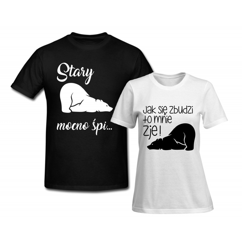 STARY NIEDŹWIEDŹ MOCNO ŚPI - ZESTAW KRÓTKICH PIŻAM DLA PARY PREZENT NA WALENTYNKI