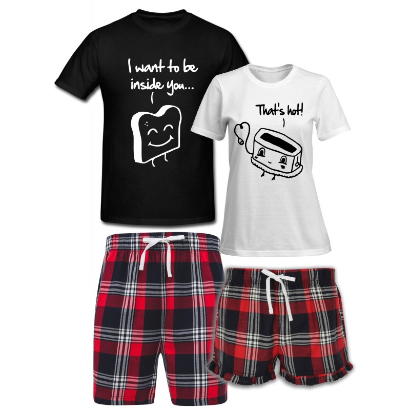 ZESTAW KRÓTKICH PIŻAM DLA PARY ZAKOCHANYCH PREZENT NA WALENTYNKI TOSTER GRZANKA