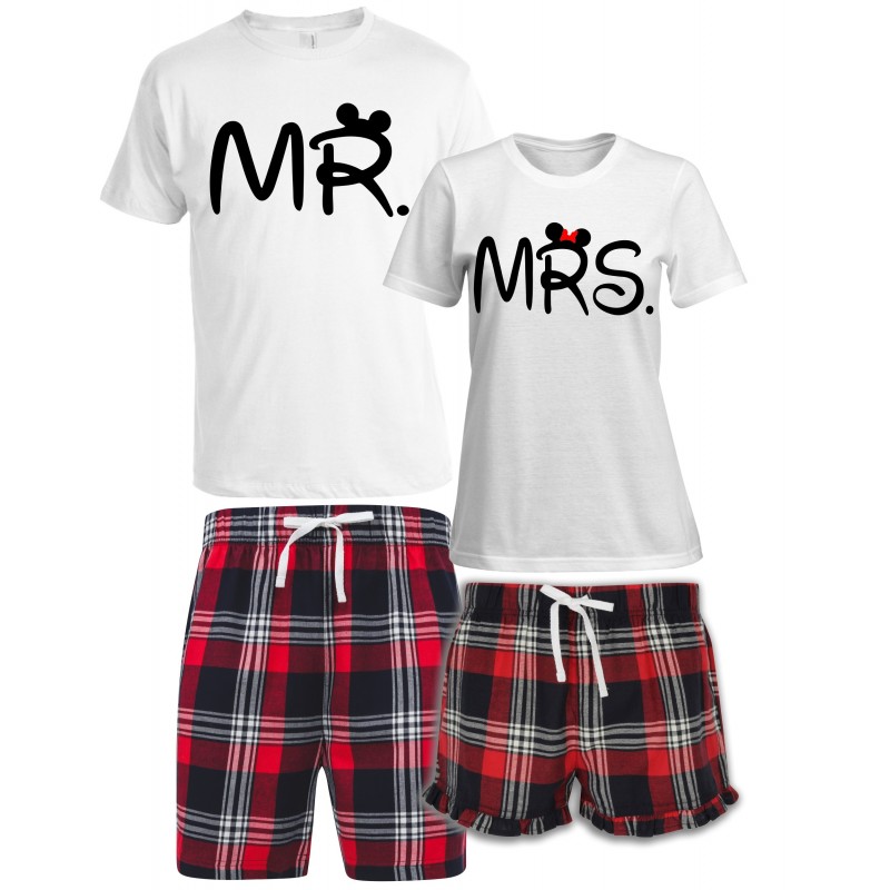 ZESTAW KRÓTKICH PIŻAM DLA PARY ZAKOCHANYCH PREZENT NA WALENTYNKI MR MRS