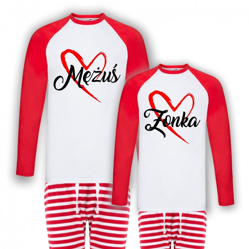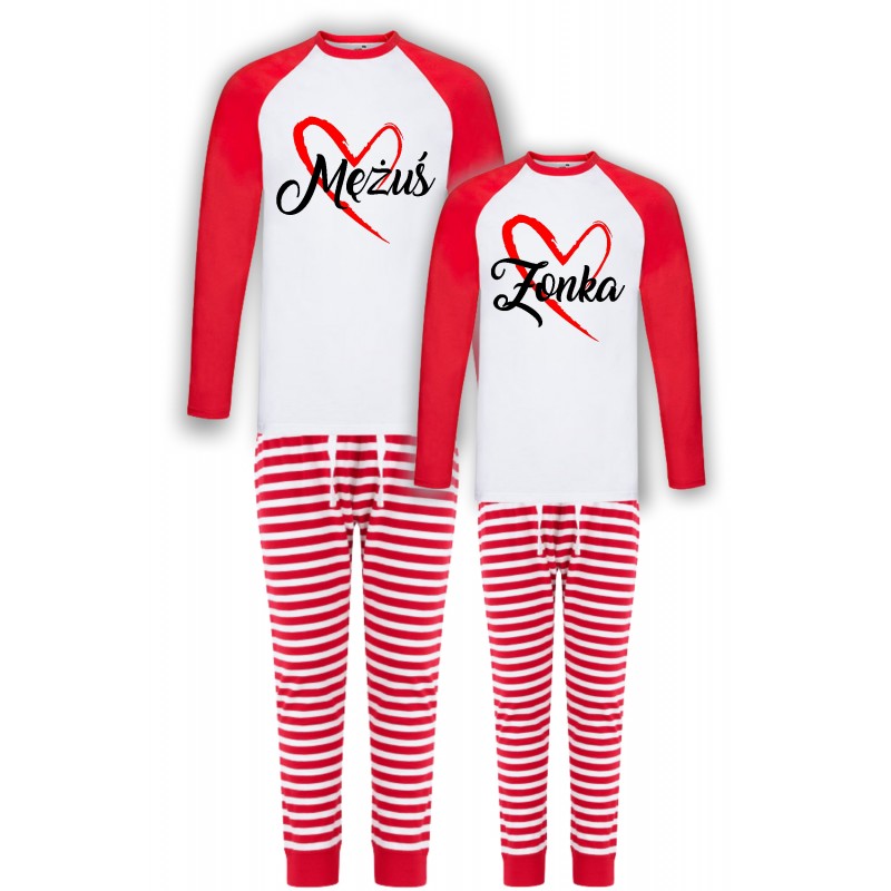MĘŻUŚ ŻONKA -ZESTAW PIŻAMY DLA PARY W PASKI PREZENT NA WALENTYNKI
