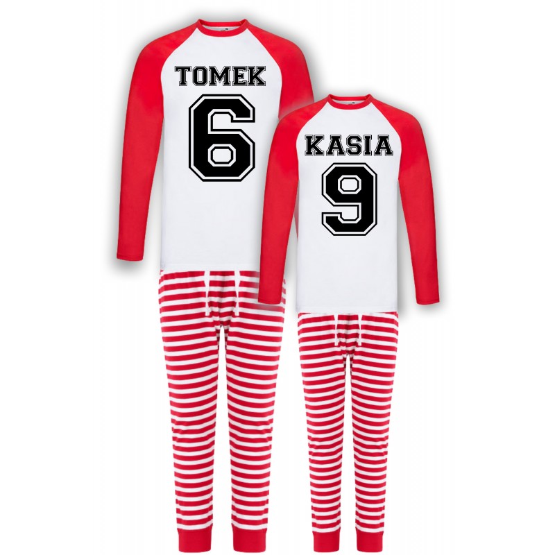 WZÓR Z IMIONAMI I NUMERAMI-ZESTAW PIŻAMY DLA PARY W PASKI PREZENT NA WALENTYNKI