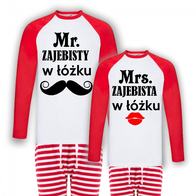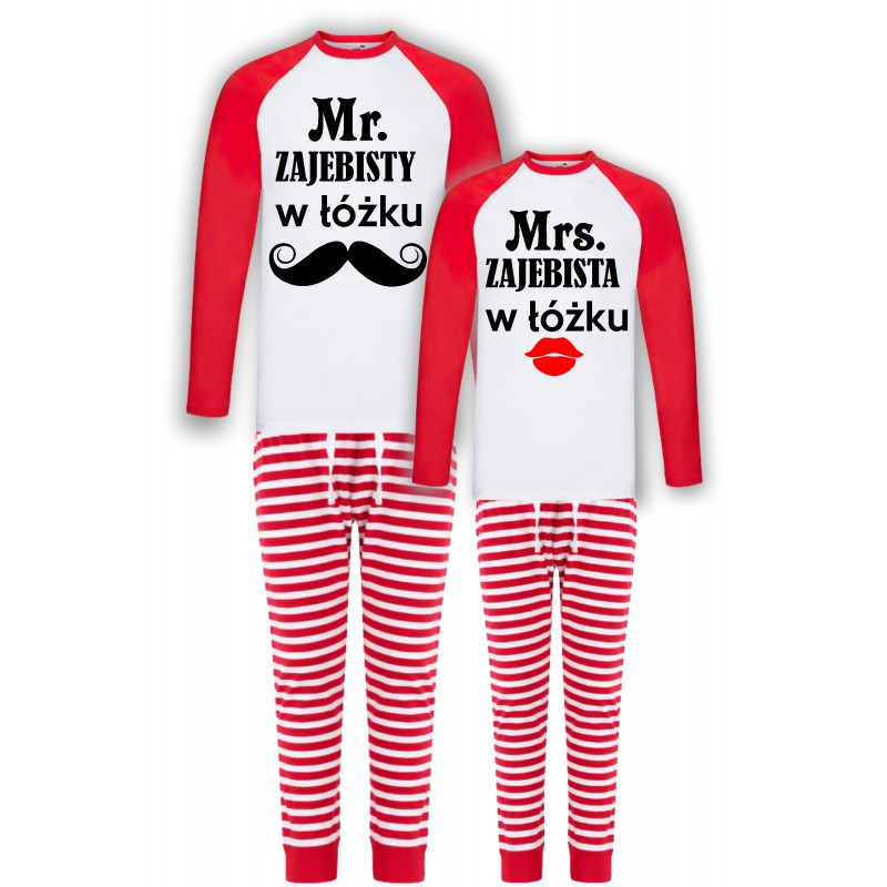 MR ZAJEBISTY W ŁOŻKU -ZESTAW PIŻAMY DLA PARY W PASKI PREZENT NA WALENTYNKI