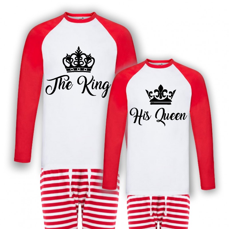 THE KING HIS QUEEN -ZESTAW PIŻAMY DLA PARY W PASKI PREZENT NA WALENTYNKI