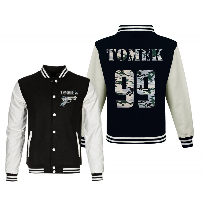 BLUZA BASEBALL Z TWOIM NADRUKIEM MORO IMIĘ PISTOLET - 19 KOLORÓW KURTKA BEJSBOLÓWKA BASEBALLÓWKA
